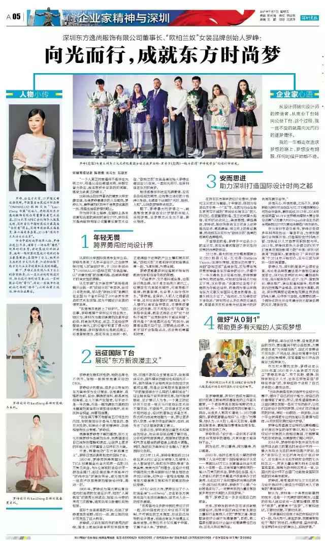 回忆往事,罗峥感慨于深圳这片创业热土。她认为,深圳作为毗邻香港的改革开放前沿,时尚资讯发达、前卫,又在给世界服装大牌代工的过程中积累了强大的产能基础,深圳服装无论是款式做工,还是营销理念,都在市场上独树一帜。正是得益于这样的产业土壤和城市环境,“欧柏兰奴”才能和深圳其它服装品牌一起,飞速发展,叫响全国。